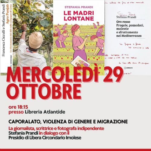 Mercoledì 29 ottobre, alle 18.15, dialogo su sfruttamento sul lavoro, caporalato, resistenze allo sfruttamento e violenza contro le braccianti attraverso alcuni libri della giornalista, tra cui «Oro rosso».