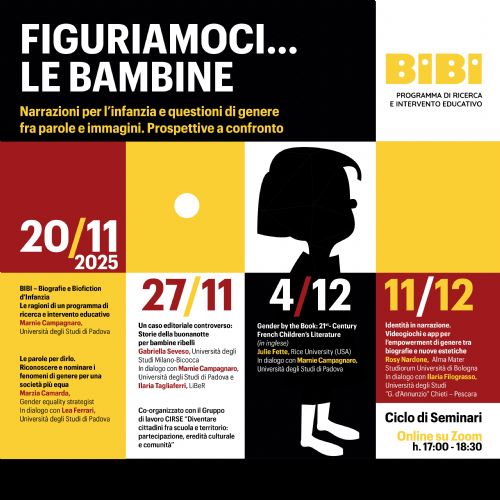Giovedì 11 e venerdì 12 settembre saremo al Tavolo partenariale del progetto BIBI – Programma di intervento educativo per la promozione del rispetto di genere tra Biografie e Biofiction d’Infanzia.