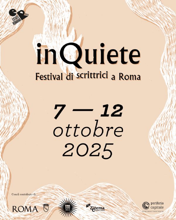 inQuiete festival di scrittrici a Roma è un progetto dell’associazione MIA e della libreria Tuba. Il progetto, promosso da Roma Capitale - Assessorato alla Cultura è vincitore dell’Avviso Pubblico Roma Creativa 365. Cultura tutto l’anno in collaborazione con Zètema Progetto Cultura.