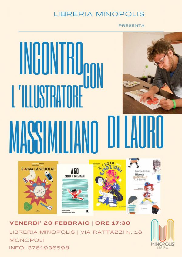 Nell'ambito dell'iniziativa Kiddo - Indipendentemente leggo, organizzata da Emme Promozione, la Libreria Minopolis di Monopoli ospita l'illustratore Massimiliano di Lauro per volare insieme oltre gli stereotipi di ogni genere e scoprire che le emozioni possono essere "cucinate" in modi sorprendenti: