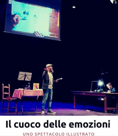 La sera del sabato 25 settembre, presso il Teatro comunale di Cagli, bambini e bambine, adulti e adulte, hanno cenato in un posto magico e ordinario insieme: un’osteria. Ma cos’ha di magico questa osteria? Al posto delle pareti, ci sono state scintillanti ed esplosive illustrazioni di Massimiliano Di Lauro; al posto del cibo quotidiano, Daniele Bergesio ha cucinato le emozioni. Com’è possibile tutto ciò?